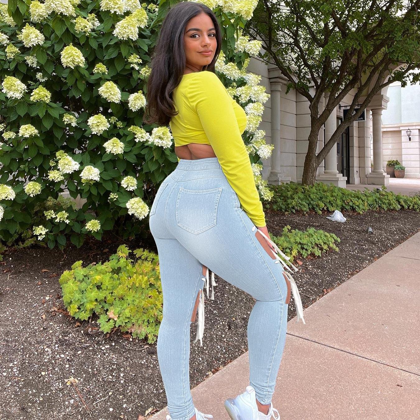 ED10967 Womens high waist skinny tape decoration pencil jeans